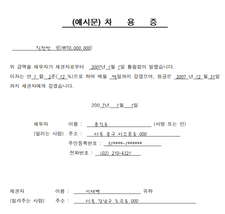 차용증 양식