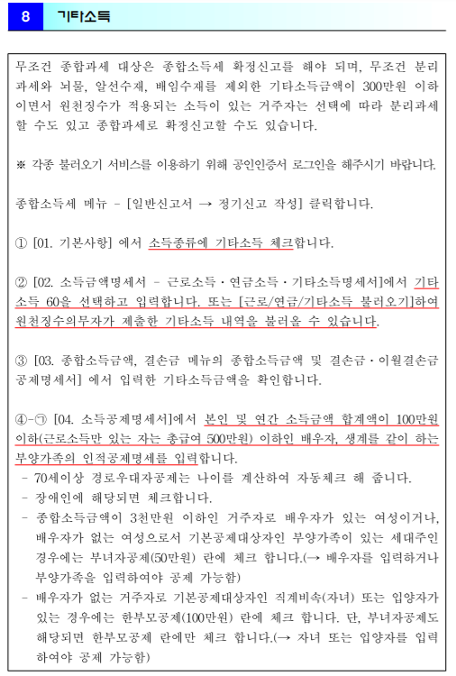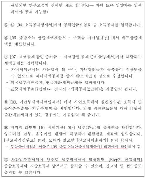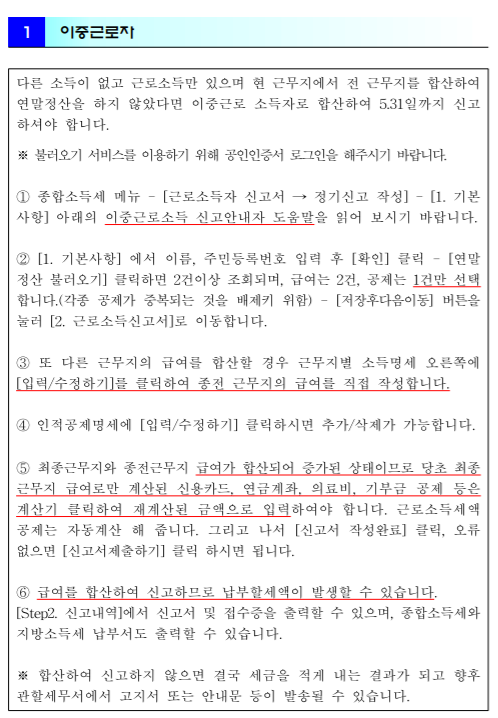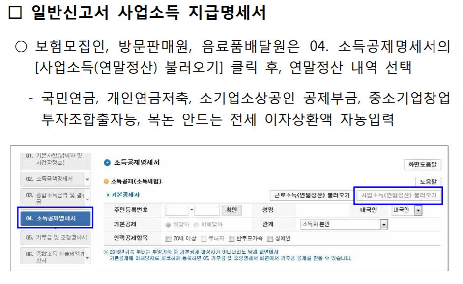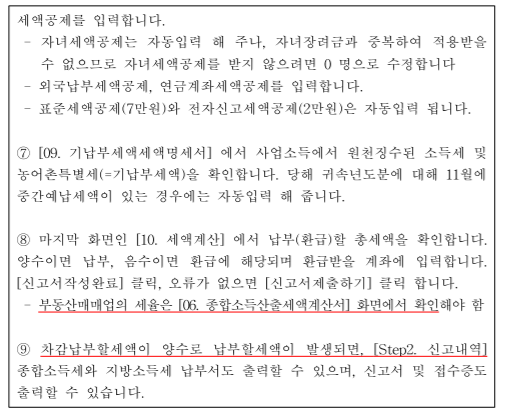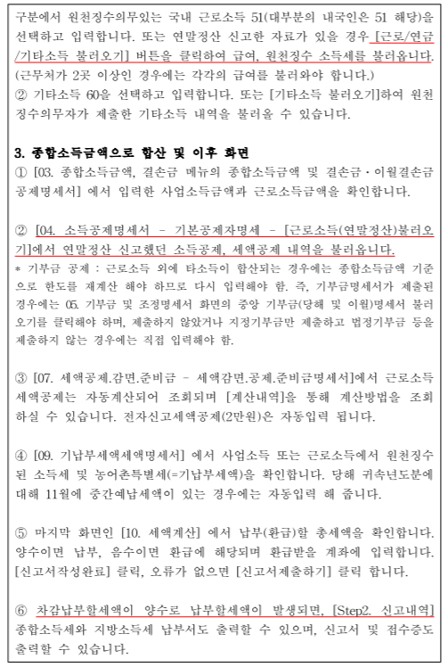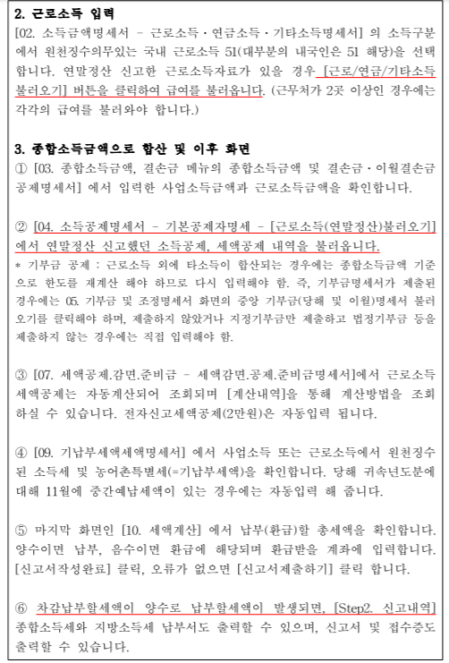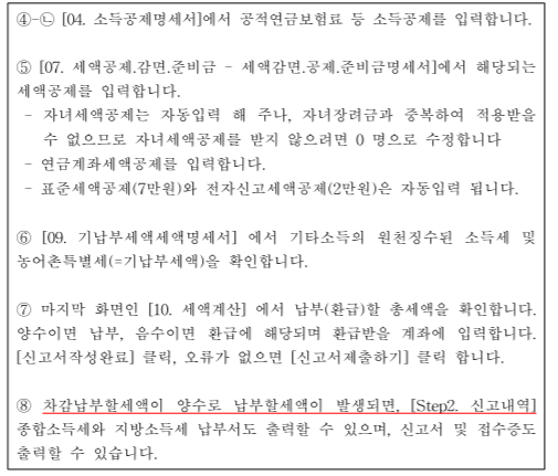 종합소득세 신고방법 이렇게 보니 어렵지 않죠? 또한 홈택스에는 [작성방법 요약]이라는 버튼을 클릭하면, 소득 종류별로 어떤식으로 세금을 처리해야하는지 아주 자세하게 나와있습니다. 아래는 국세청의 [작성방법요약] 내용입니다.