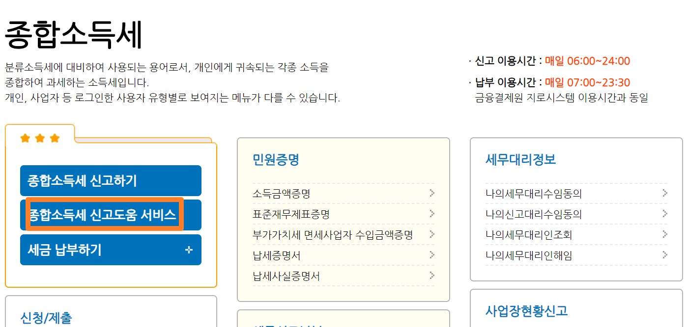 그리고 종합소득세 신고도움 서비스를 눌러줍니다.