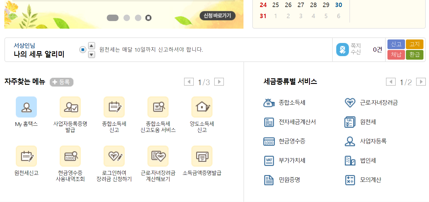먼저 인터넷에 홈택스를 검색해줘서 접속해줍니다.