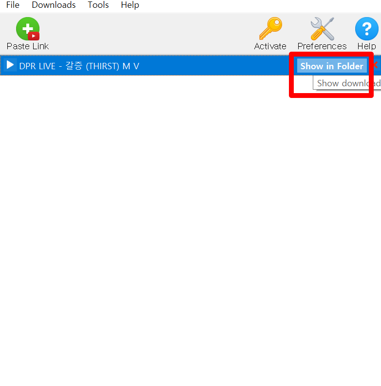 파일을 어디서 보냐 하실수도 있는데 파일 위에 마우스를 올리게 되면 Show in Folder가 활성화됩니다 클릭해주시면 다운로드된 폴더로 이동하게 됩니다.