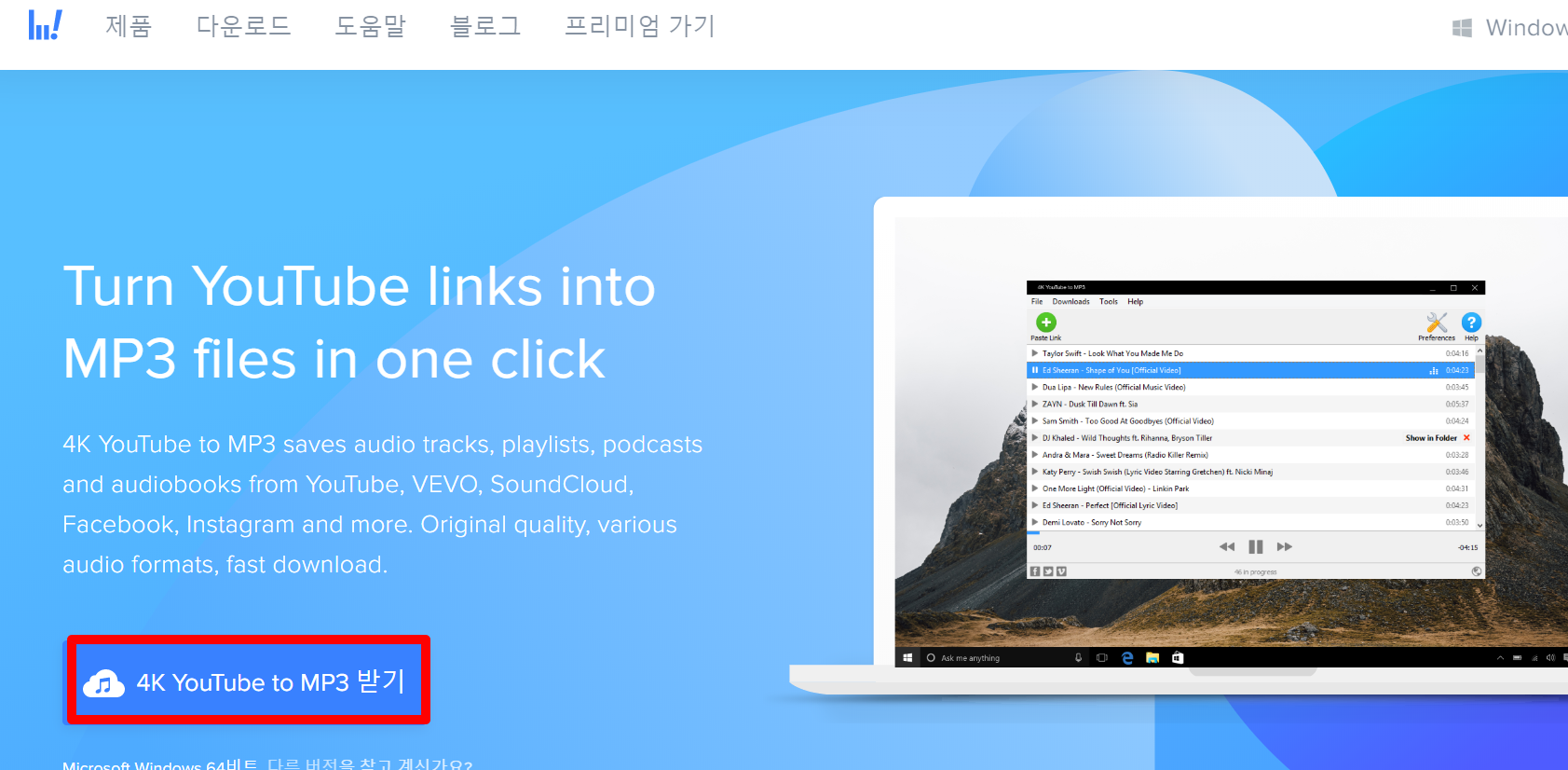 유튜브 음원추출 프로그램 4k YouTube to MP3는 간단하게 음원추출이 가능한 프로그램이다라는 설명입니다.