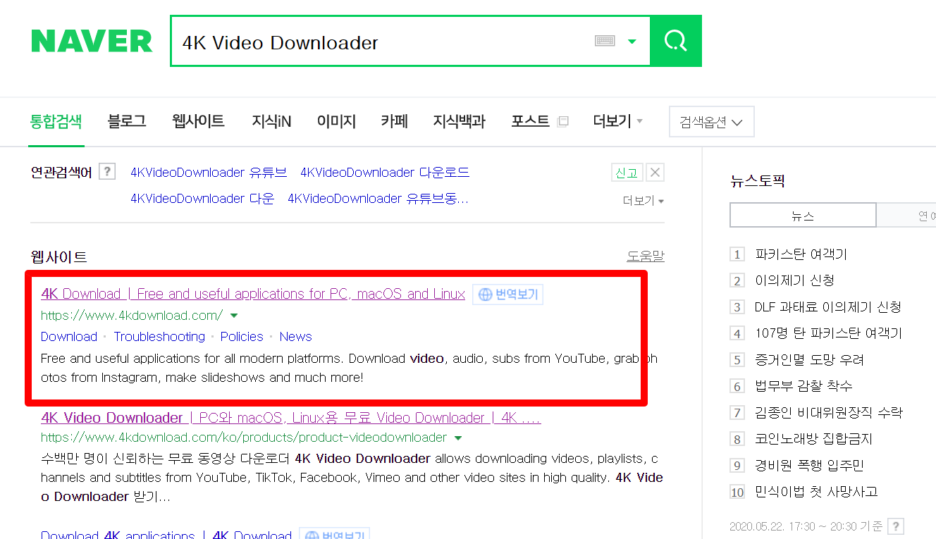 인터넷 검색창에 4K Video Downloader을 검색해서 제일 첫번째 나오는 웹사이트로 들어가주시면 되겠습니다.