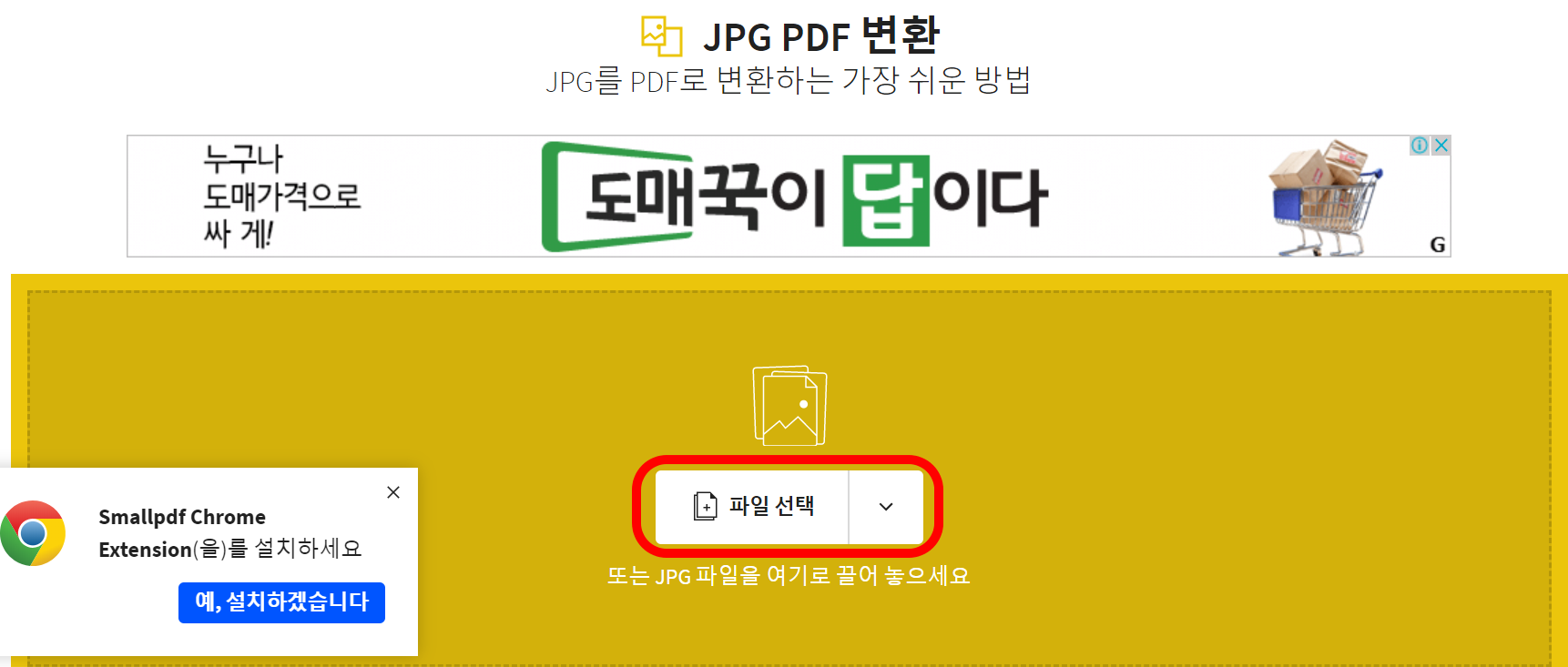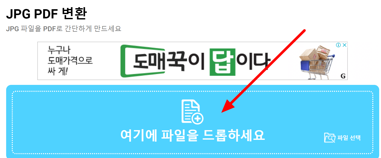 위쪽을 보면 파일을 드롭할 수 있는 칸이 있고, jgp pdf 변환 방법과 기타 장점에 대해서 설명해주고 있습니다. 정말로 파일을 드래그 해서 올려주셔도 되고 아니면, 파일을 드롭하세요 부분을 마우스로 클릭해서 직접 파일을 선택할 수도 있습니다. 편한 방식대로 파일을 업로드 해주시면 되겠습니다.